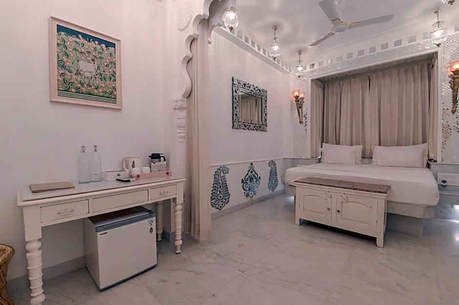 Heritage rooms are lake facing rooms. Featuring traditional Indian decor, this air-conditioned room has a Jharokha (enclosed balcony) with views of Pichola Lake. Includes a satellite TV and hot-water showers. Double and Twin bedded rooms are subject to availability.
